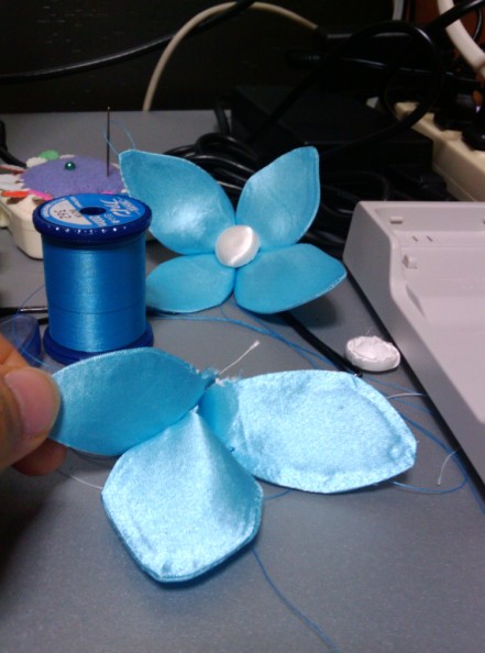 腰の花は付け外せるように2つずつスナップボタンつけました。