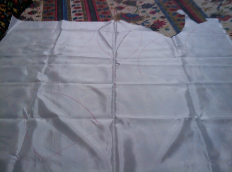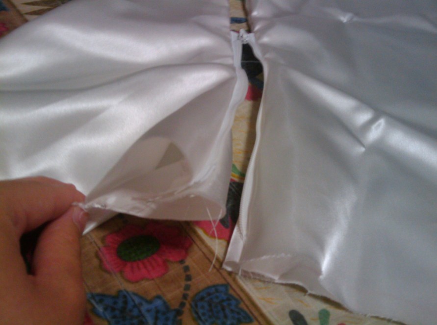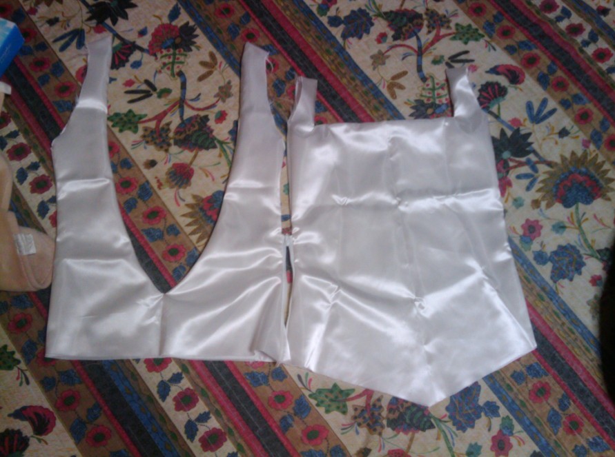 とりあえず前回裁断した前方向の白花弁スカートを縫って袋状にして