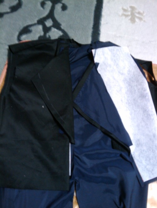 ちゃんともう片方の襟裁断しなおして 両方、芯地を入れ込んでアイロンして・・・ ボタン一個だけ作って・・・ ・・・ それだけ・・・;。;