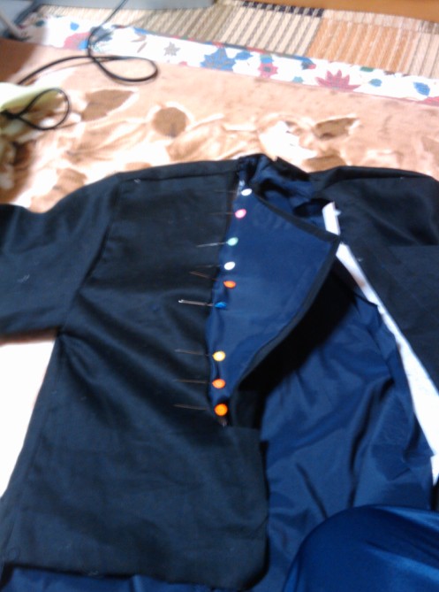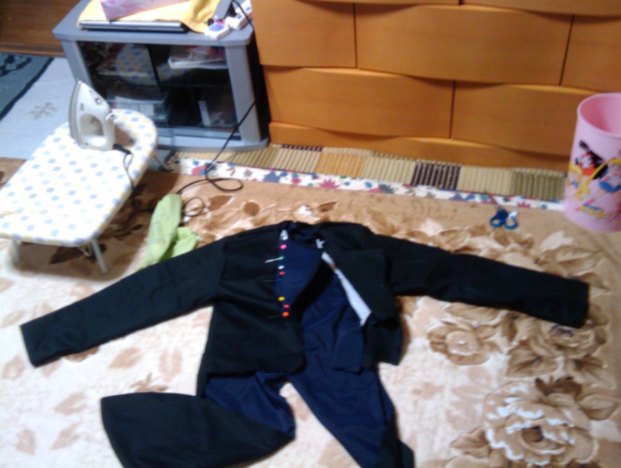 袖つけたー^^ 襟を待ち針つける所で終了 あー・・・さっさと終わらせたい ウィッグもカットしてないのに・・・ ・・・・終了するつもりだったけど 寝る直前の時間をちょっと利用してみたりw