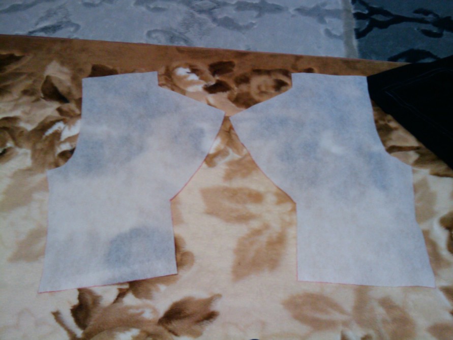 肩にカーブつけて前に芯地つけて 片方だけ襟つくった!! もう片方は、布の編目が反対方向だと ついさっき気づいた・・・ 明日反対だけ裁断しなおし!;。;