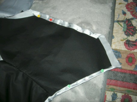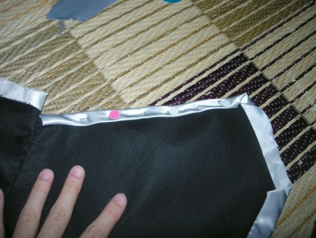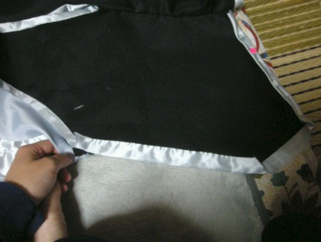 今日はちゃんと行動起こしたぜ! とりあえずこの間の続きの作業終わらせて 右前の心地と襟の心地をあわせるように縫って 袷(あわせ)部分の端っこの部分縫って 前の三角部分にマチ針つけるところまではしたぞ!! でも全体的に右側しかやってないという・・・ 早く両方済ませたい^^;